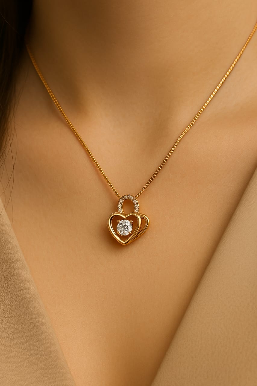 Celebrate love, beauty, and timeless elegance with our Eternal Heart Solitaire Pendant. This stunning necklace showcases a double-heart design, where the outer heart wraps gracefully around a sparkling solitaire stone, symbolizing love, protection, and togetherness.
