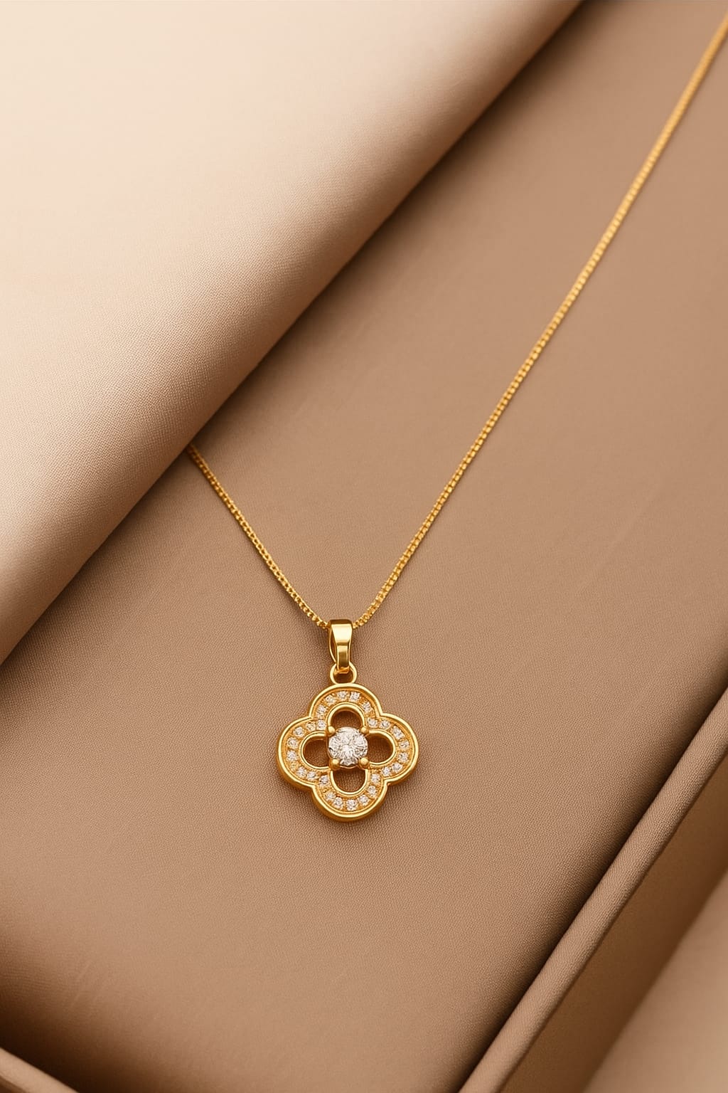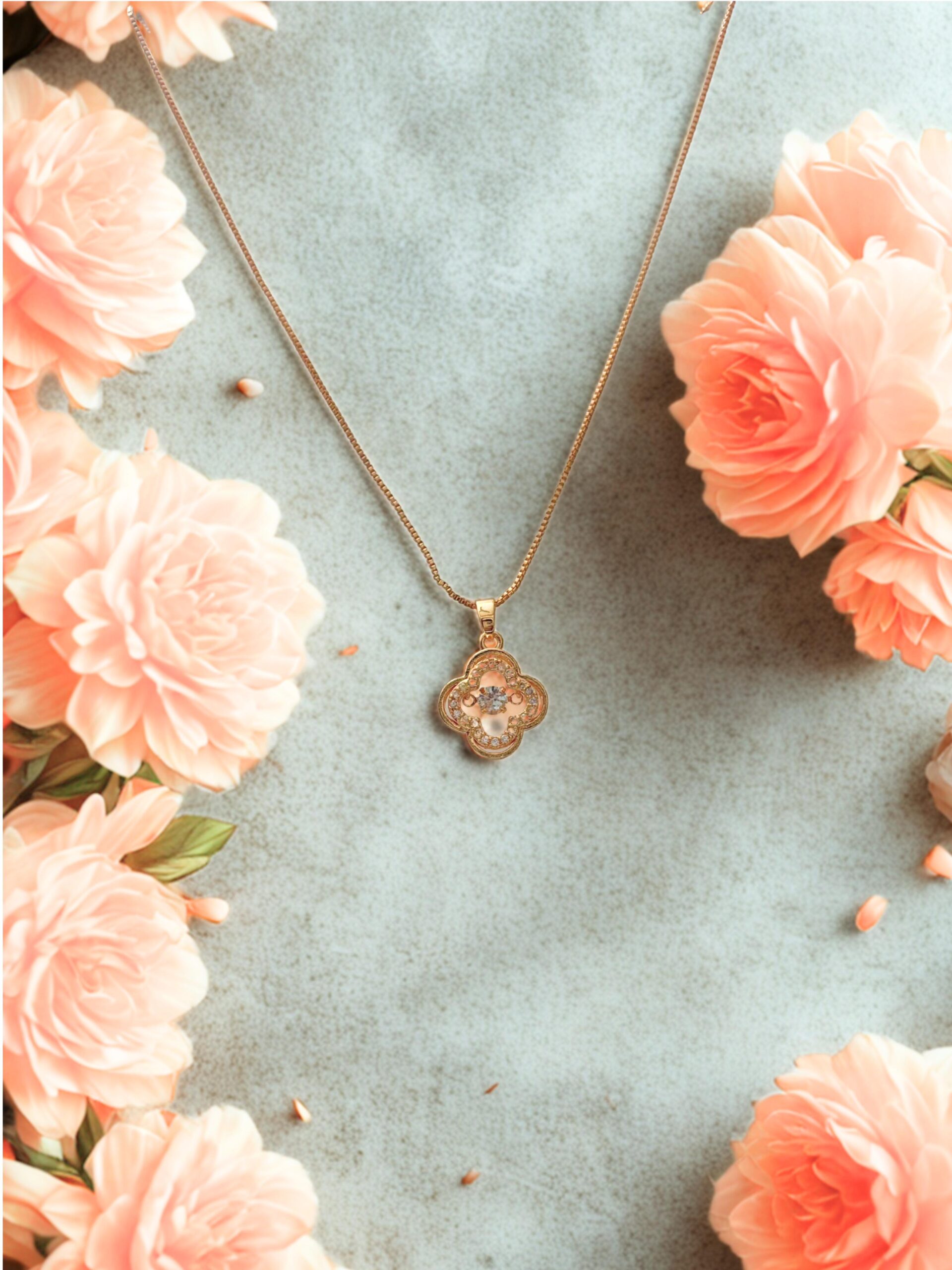 Experience timeless elegance with the Golden FleurBloom Pendant, a beautifully designed piece that blends floral charm with luxurious sparkle. This pendant features a unique four-petal clover-inspired design, perfectly symbolizing luck, love, and beauty. The detailed petal edges are adorned with shimmering CZ stones, adding a refined halo effect that enhances the pendant’s radiant appeal.