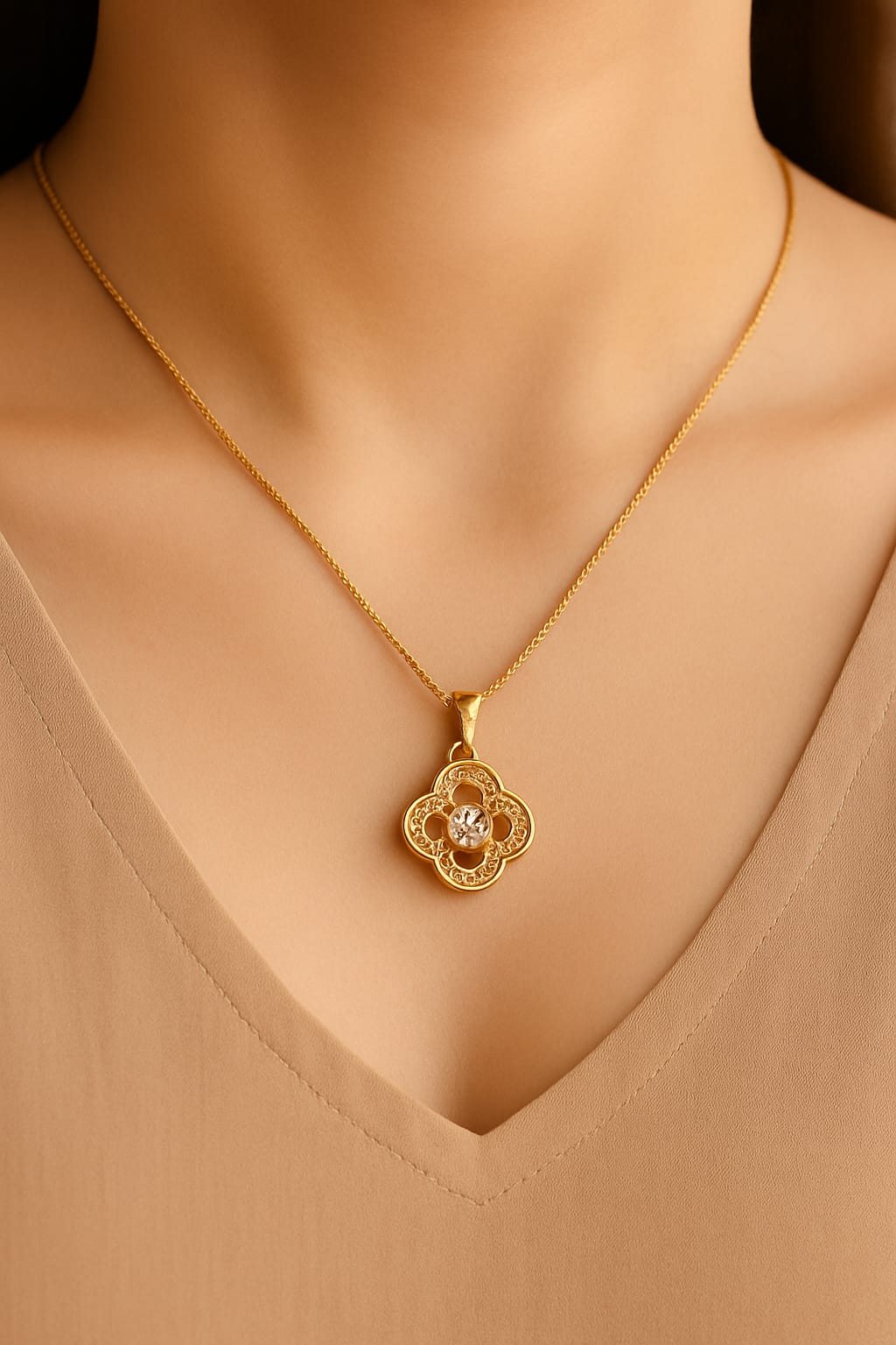 Crafted from high-quality, skin-friendly alloy, this pendant is lightweight, durable, and designed for all-day comfort. The intricate openwork detailing adds sophistication while keeping the design elegant and airy.